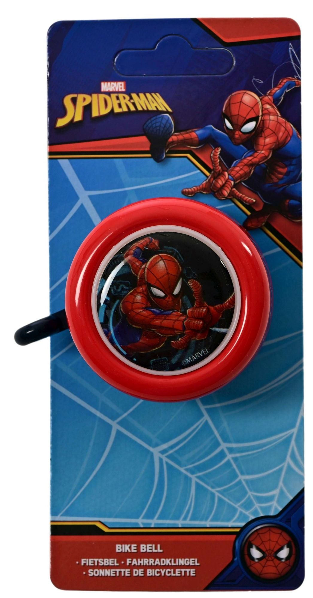 Deze coole Marvel Spider-Man fietsbel is makkelijk te bevestigen aan de fiets van iedere Spider-Man-fan! Laat je fietsbel klinken, zodat iedereen weet dat je de hoek om komt. Ring-ring!