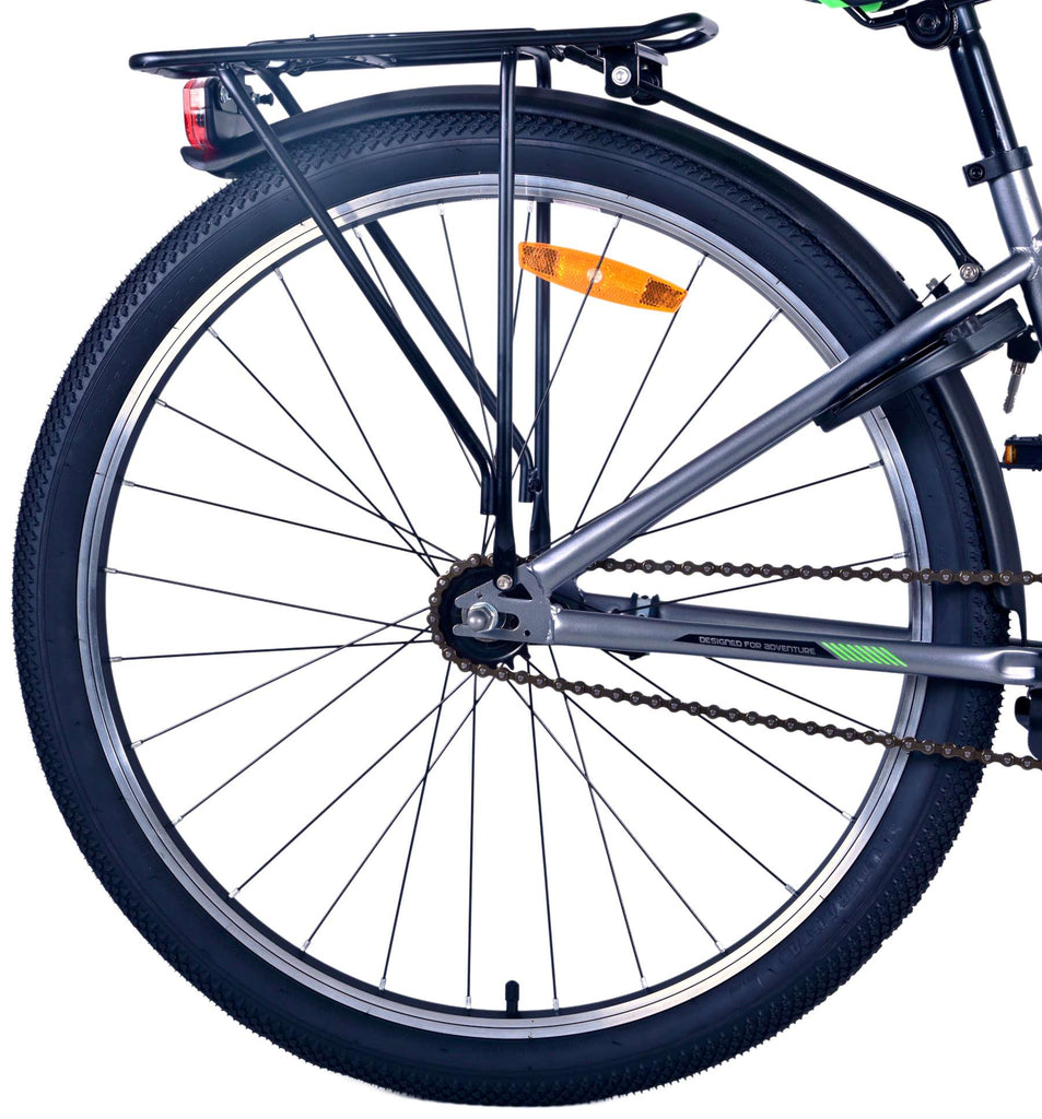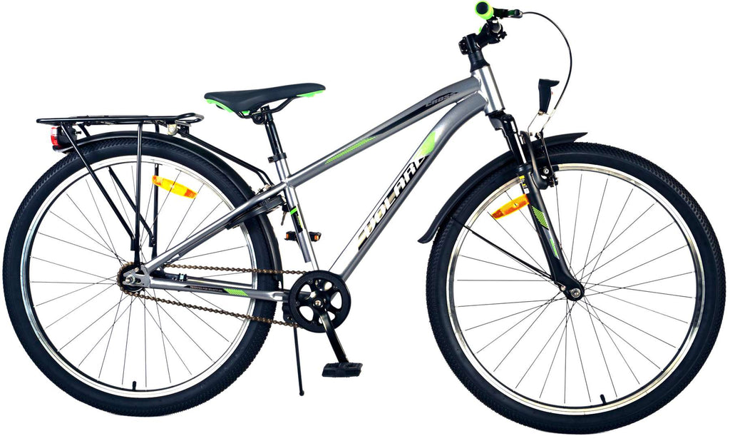 Veiligheid staat voorop! Daarom heeft deze gave fiets een handrem en terugtraprem, reflectoren in de wielen en verlichting op batterij voor en achter. Ook aan het comfort is gedacht. De mooie donkergrijze Volare fiets heeft een handige achterdrager om moeiteloos al je spullen mee te nemen, een comfortabel zacht zadel, een standaard zodat je fiets altijd netjes blijft staan en een stevig slot. Om zo lang mogelijk van de fiets te kunnen genieten heeft deze een extra lange zadelpen waardoor de fiets nóg langer met het kind meegroeit. Let op, het stuur is niet in hoogte verstelbaar!