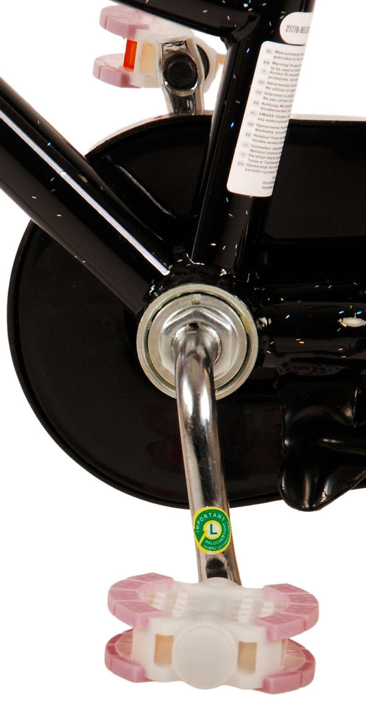 Veiligheid staat voorop! Daarom heeft deze gave fiets een handrem en terugtraprem, afneembare zijwieltjes en een gesloten kettingkast. Daarnaast heeft de fiets reflectoren voor en achter en een leuke bel. Ook aan het comfort is gedacht. De mooie zwarte Volare fiets heeft een handige voordrager met snelbinders, een achterdrager geïntegreerd in het frame en een luxe zacht zadel. Om zo lang mogelijk van de fiets te kunnen genieten zijn het zadel en stuur in hoogte verstelbaar. Wordt geleverd inclusief al het montagemateriaal dat nodig is om de fiets in elkaar te zetten!