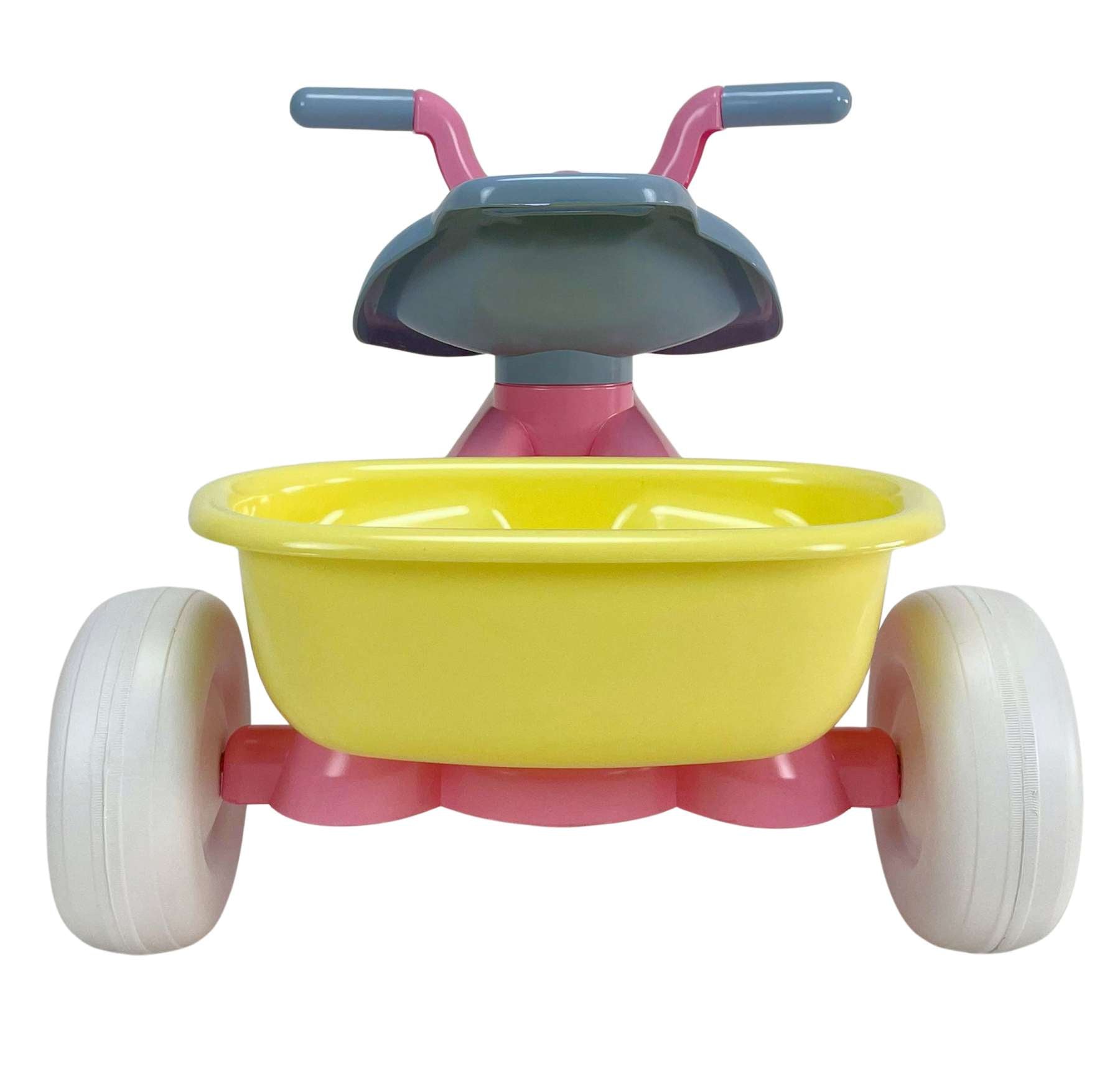Lichtroze kleur met vrolijke details. Harde banden die niet lek kunnen gaan, zodat je je geen zorgen hoeft te maken over het onderhoud.