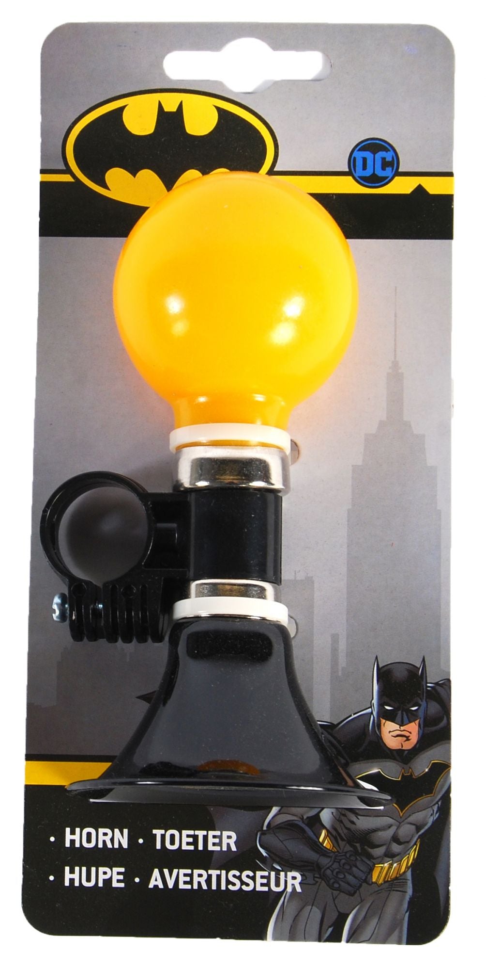 Deze coole Batman Fietstoeter is makkelijk te bevestigen aan de fiets van iedere Batman-fan! Laat je toeter klinken, zodat iedereen weet dat je de hoek om komt. Toet-toet!