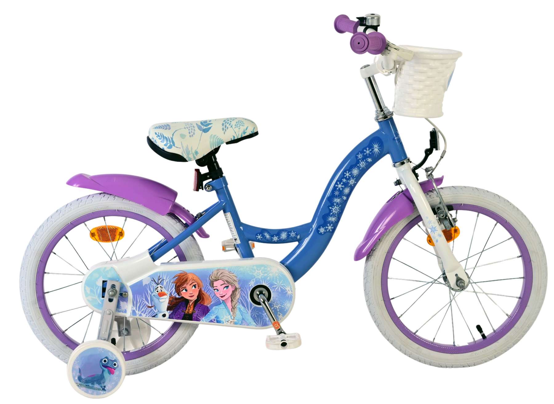 Veiligheid staat voorop! Daarom heeft deze gave fiets een handrem en terugtraprem en afneembare zijwieltjes. Ook aan het comfort is gedacht. De mooie blauwe Frozen fiets is voorzien van een mandje. Om zo lang mogelijk van de fiets te kunnen genieten zijn het zadel en stuur in hoogte verstelbaar.