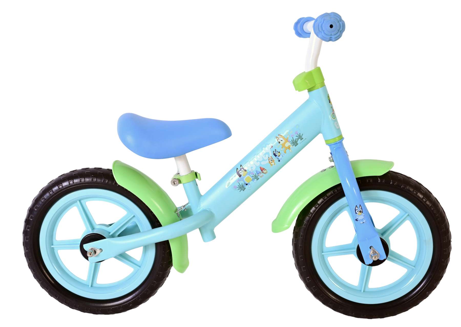 Speciaal voor de allerkleinste avonturiers is er deze schattige Bluey loopfiets in een frisse lichtblauwe kleur. De fiets is prachtig versierd met vrolijke afbeeldingen van Bluey, het bekende hondje uit de populaire kinderserie.