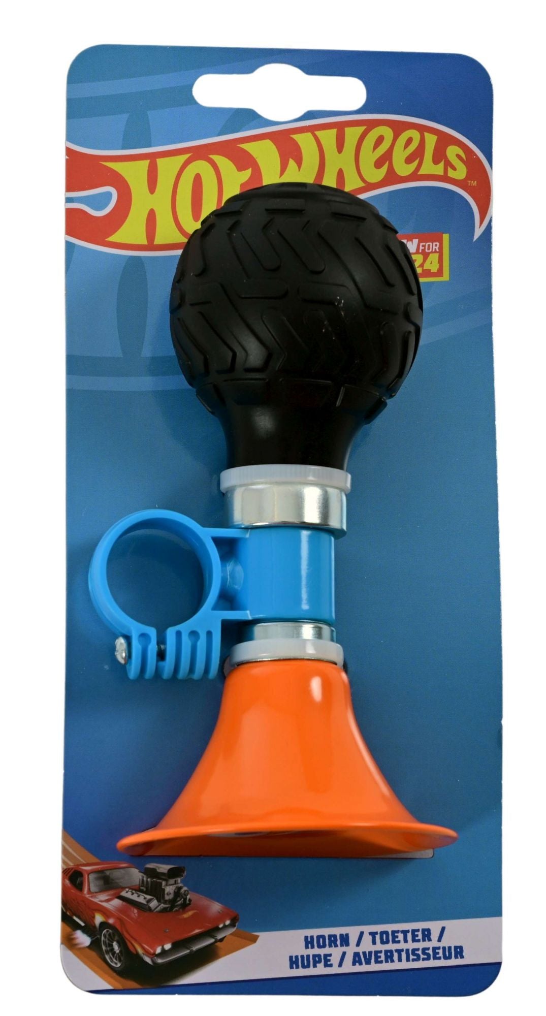 Deze coole Hot Wheels Fietstoeter is makkelijk te bevestigen aan de fiets van iedere auto fan! Laat je toeter klinken.