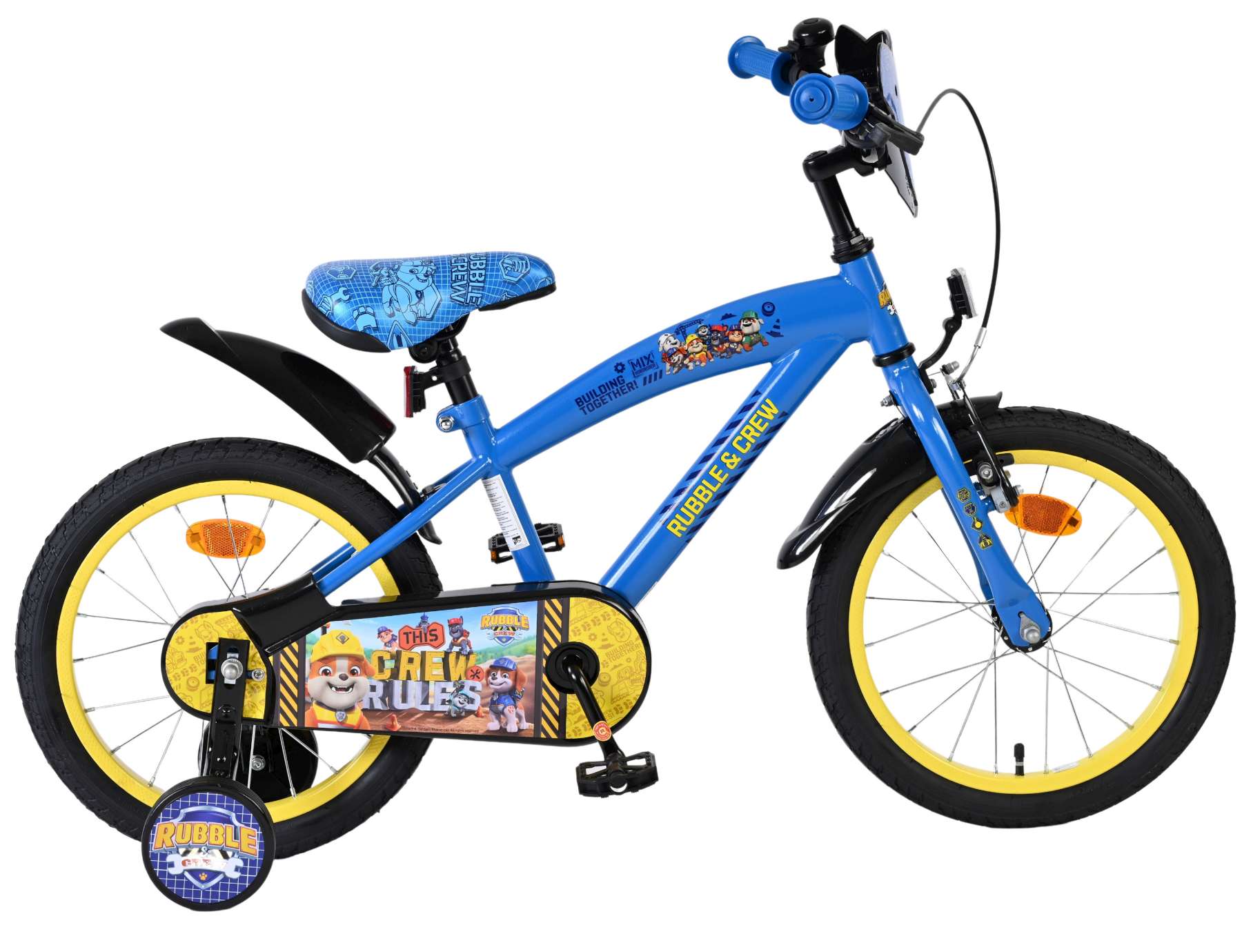 Met de stoere Rubble & Crew 16 inch kinderfiets wordt elke rit een avontuur! De fiets is helemaal in stijl met kleurrijke afbeeldingen van Rubble & Crew op het frame én een stoer stuurplaatje voorop – perfect voor fans van deze vrolijke bouwvrienden.
