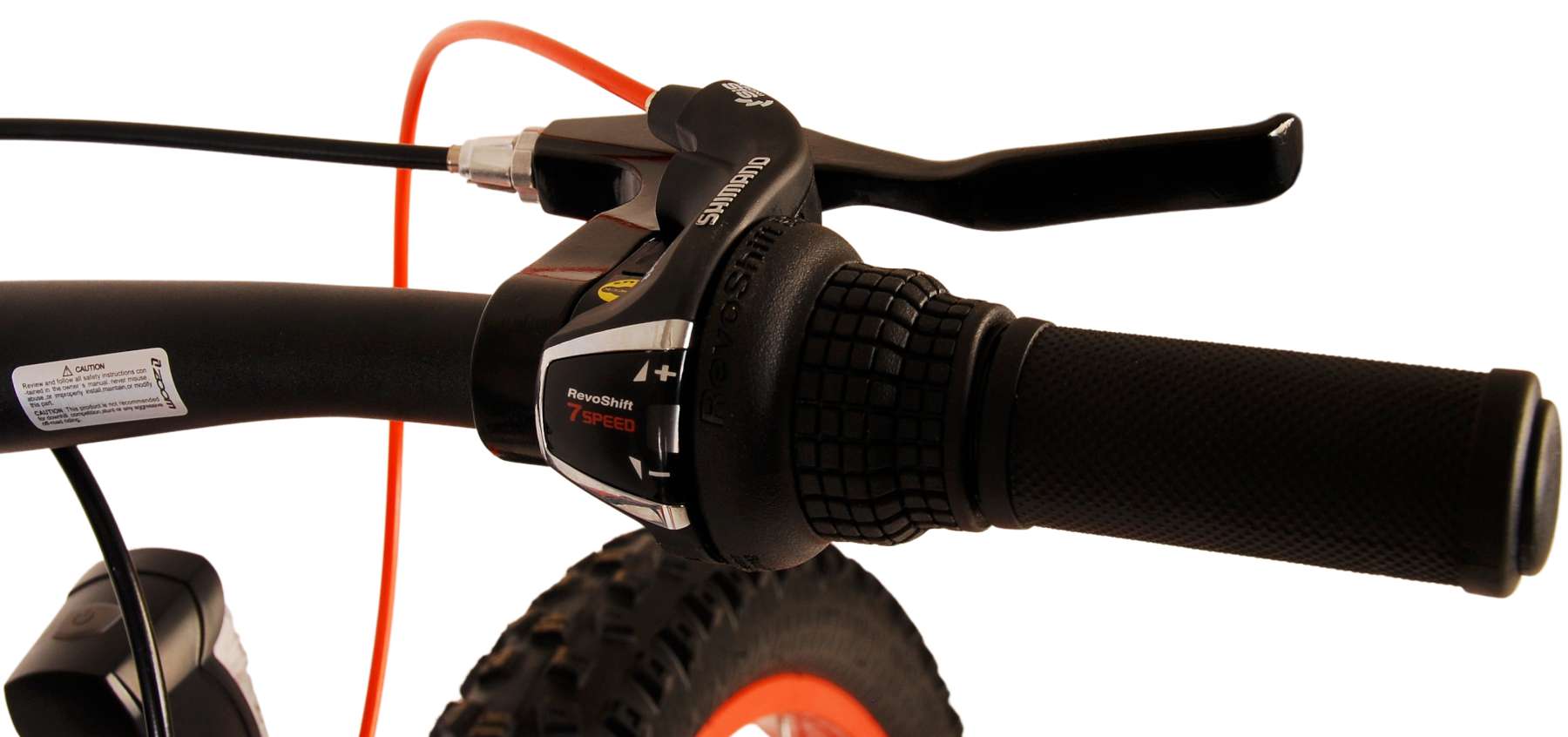 Veiligheid staat voorop! Daarom heeft deze gave fiets geen terugtraprem maar twee handremmen. Daarnaast heeft de fiets verlichting voor en achter, een stevig slot, en een bel. De gekantelde stuurpen zorgt voor een beter zicht op de weg, maar is daardoor niet in hoogte verstelbaar. Ook aan het comfort is gedacht. De mooie zwarte Volare fiets met rood en oranje accenten in de velgen heeft een extra licht aluminium frame, een standaard zodat je fiets netjes blijft staan, extra brede banden, 7 versnellingen, en zachte handvaten van kraton. Om zo lang mogelijk van de fiets te kunnen genieten is het zadel in hoogte verstelbaar.